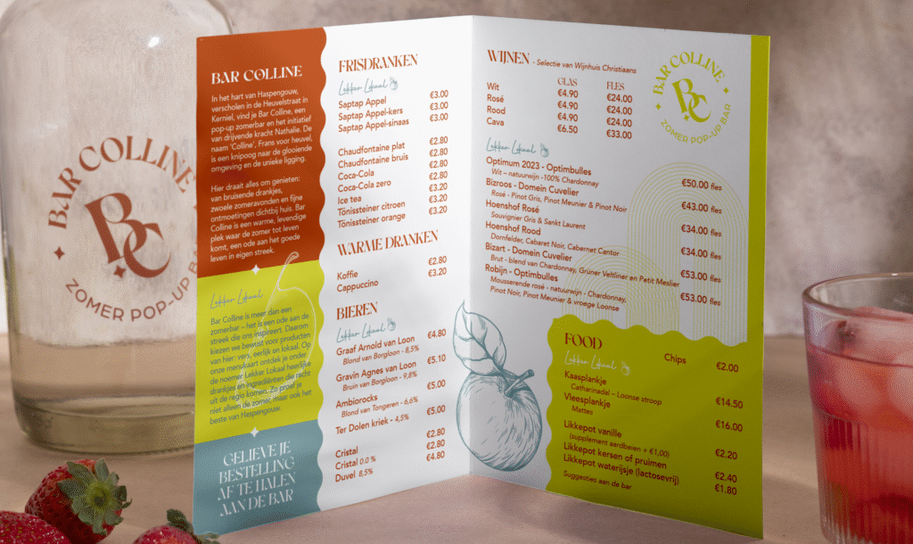 Onder het concept ‘Lekker Lokaal’ werd ook de menukaart grafisch uitgewerkt:
