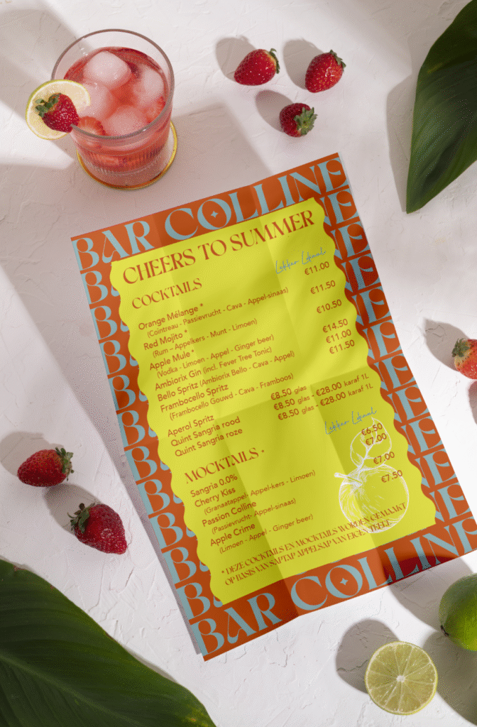 ontwierp ik een frisse, speelse visuele identiteit die perfect aansluit bij de unieke sfeer van de locatie.