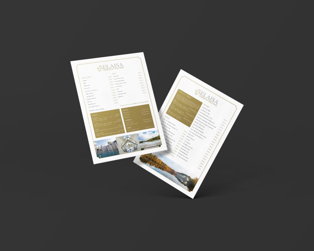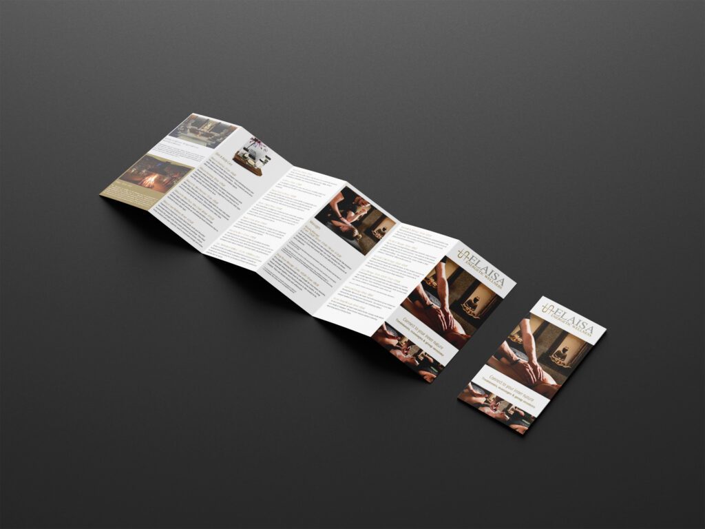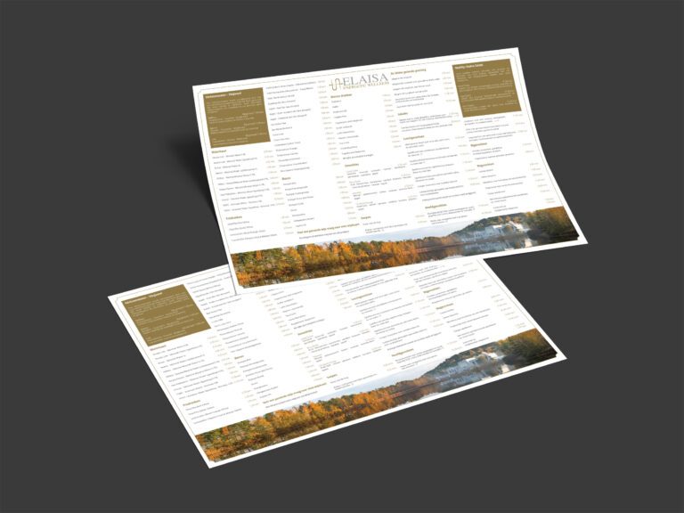 Voor Elaisa Wellness, gelegen in het prachtige Nationaal Park Hoge Kempen, mocht ik een brede waaier aan grafische en marketingtaken op mij nemen. Mijn focus lag vooral op drukwerk en visuele communicatie, maar ook online kreeg ik de kans om het merk mee te versterken.